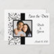 Add your own photo to our custom Save the Date postcards with an elegant black and white floral swirl design. Easy to use template - just add your photo, and enter the names of the Bride & Groom, along with the wedding date in the space provided.