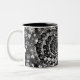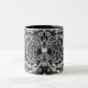 Original linear design of black and white flowers with the optical illusion of a tunnel. Creative hand drawn flowers and leaves spiral in decreasing circles. The perfect design for those who want something beautiful but different.