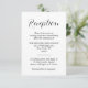 Vertical wedding reception enclosure card in black and white with formal wording informing your guests on the cocktail party and dinner time and location. The back can be personalised with your website or accommodation details as needed.