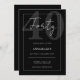 Modern minimalist 40th birthday invitation featuring a bold oversized “40,” elegant script “Forty,” and a clean double-line frame on a dark charcoal background. Easy to update with the guest of honor’s name, party details, and RSVP.