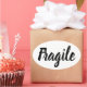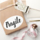Modern minimalist and trendy black and white packaging sticker with the text: fragile.
