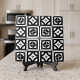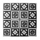 Bold and mesmerising, this black and white ceramic tile features a symmetrical starburst pattern with geometric precision. Crisp black diamonds and compass-like shapes radiate across a white backdrop, creating a rhythmic visual flow that feels both classic and modern. It’s a striking motif that instantly draws the eye and adds depth to any surface.
