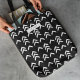 Simple, stylish, trendy holiday design with a typewriter style typography font with your custom name over a black and white geometric chevron pattern. The perfect gift or accessory!