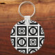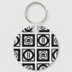 Bold geometric pattern features four black squares with white space between them. The two diagonally opposed thick squares each contain a thin black circle with a thick equal sign inside. In contrast, the two thin squares each contain a thick black circle that touches the square’s edges with a thin vertical equal sign inside.