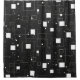 This image features a modern, abstract geometric pattern in black and white. It consists of various-sized squares and rectangles arranged randomly across a black background. Some shapes are solid white, while others are outlined, creating a layered effect. Small dots and pixel-like elements are scattered throughout, adding depth and texture. The overall design is minimalistic and conveys a digital or futuristic aesthetic.