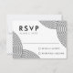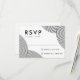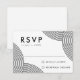 Modern wedding response cards featuring black swirled geometric lines at the corners with a white background. Personalize the black and white wedding RSVP cards by adding your RSVP date and custom accepts/declines wording. The modern boho RSVP cards reverse to display a solid white background.