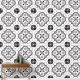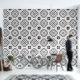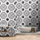 A stylish modern black and white geometric abstract shapes and quatrefoil shaped peel and stick wallpaper wall treatment, to modernise your bath, kitchen, or any room. Perfect when you live in a rental apartment that needs your personal style and touches of design to make things pop. Peel and stick wallpaper is one of the best DIY hacks for apartment dwellers to give them more control over their home decor style! Go wild with patterns and colours. Comes in smooth and textured. Get the textured for bumpy textured walls, and smooth or textured for smooth walls.