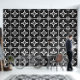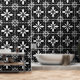 A stylish modern black and white geometric abstract shapes and quatrefoil shaped peel and stick wallpaper wall treatment, to modernise your bath, kitchen, or any room. Perfect when you live in a rental apartment that needs your personal style and touches of design to make things pop. Peel and stick wallpaper is one of the best DIY hacks for apartment dwellers to give them more control over their home decor style! Go wild with patterns and colours. Comes in smooth and textured. Get the textured for bumpy textured walls, and smooth or textured for smooth walls.