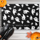 Welcome guests in festive style with this Halloween doormat featuring a bold ghost pattern on a black background. The simple black and white design blends modern minimal style with spooky fun and you can personalise it with your family name for a special touch.