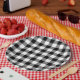 Black, white, and grey squares form a bold, checked plaid. The black and white gingham pattern was created from scratch.