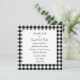 Black and white gingham pattern borders a simple wedding invitation. Choose "customise it" to change font size and style or change the wording.