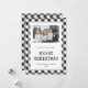 Modern black and white gingham plaid photo Merry Christmas card. Easily personalise this black and white photo holiday card with your photo, and family name.