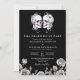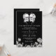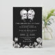This black and white 'till death do us part' gothic floral skulls wedding invitation can be personalised with your information in modern typography. Designed by Thisisnotme©