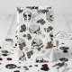 Hand-drawn in black ink, this gift bag features a beautiful pattern of skulls, roses and spiderwebs in cream and blush tones, all against an elegant black and white background.