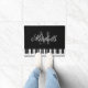 Elegant Black and white grand piano keys monogram door mat. Make your own custom monogrammed indoor / outdoor doormat with custom background colour and text. Add your own welcome message, family name, surname, initial letter or funny quote. Cute gift idea for new home / housewarming, wedding venue, store, instrument shop, company office, business, band, classical music orchestra, wedding event etc. Stylish script typography. Personalizable template. Create your own classy entry mat / rug for front door / entryway or hall. Customisable home decor / decorations for your chic house. Novelty gift idea for pianist, piano player, music teacher, pianoman, dad, mum, student etc. Available in small and big size.
