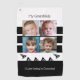Black and white, with 4 photos of the grandchildren, stripes and arrow shapes.