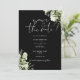This elegant black and white botanical greenery floral save-the-date invitation can be personalized with your information in chic typography with your wedding website QR code and details on the reverse. Designed by Thisisnotme©