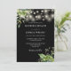 This elegant eucalyptus greenery botanical string lights black and white wedding invitation can be personalised with your information in chic typography with your wedding website QR code on the reverse. Designed by Thisisnotme©