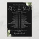 This stylish black and white greenery wedding schedule timeline can be personalized with your wedding details in chic typography. Designed by Thisisnotme©