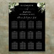 Black and white elegant floral greenery wedding seating chart featuring signature style names, this chic, stylish seating chart can be personalised with your information in modern lettering. Designed by Thisisnotme©