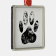 Black and White Grunge Dog Paw Print Metal Ornament