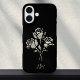It looks like these roses have been stamped on to a black phone case, just in reverse colours. This is a striking beautiful monochromatic black and white phone cover with a grunge gothic aesthetic. You can easily customise your initials, or remove them for a more minimal look.