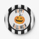 7" Black and white stripe Halloween themed paper plate. Part of a Halloween party collection by Whimzy_Designs.