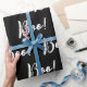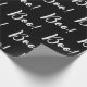 Black And White Halloween Ghost Boo Pattern Wrapping Paper. It is designed with a fun Halloween pattern of the typography "Boo!" in white trendy bold hand lettered script on black background. Perfect for an October birthday party or to use for spooky Halloween crafting. This is a fun modern stylish design!
