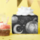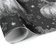 A black-and-white Halloween pattern wrapping paper featuring intricately sketched pumpkins, soaring bats, detailed spiderwebs, and celestial accents like stars and a crescent moon. The hand-drawn line work and spooky nocturnal elements create a timeless, eerie aesthetic perfect for gothic and autumn-inspired designs.