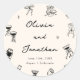 Black and White Hand Drawn Quirky Wedding Classic Round Sticker