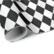 Bold black and white harlequin diamond-patterned wrapping paper.
