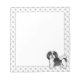 Destei's original cartoon illustration of a cute black and white coat color Bichon Havanais / Havanese breed dog. The edges on the background have a pattern of gray dog paw prints while the middle is white.