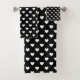 Classic white hearts on a black background create a simple pattern for expressing love anytime! Shown here on a custom set of bath towels. You can adjust the size of the pattern any way you prefer and change the black background colour if desired on each towel. Great for combining with colours or with black and white bath decor.