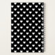 Classic, small white hearts on a black background create a simple pattern for expressing love anytime! Shown here on a spiral bound notebook with several paper styles available. You can adjust the size of the pattern any way you prefer and change the black background colour if desired on both sides. Personalise it with a name or any text.
