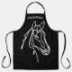 Black and white horse kitchen BBQ apron for men or women. Available in small, medium and large size. Personalised cooking aprons in any colour. Personalise with your own full name or business name. Stylish script typography. Create your own uniform for friends, family, restaurant personnel, staff, boss, employee, waiter, mum, girlfriend, dad, father, mother, wife, daughter, sister, brother, husband, grandma, grandpa, kids, boss, co worker, chef, cook, colleague, barista etc. Also great for formal dinner party, catering company, classy wedding, pub, fancy bistro, restaurant, pub, hotel bar, cafe, coffee shop, baking, farm, equestrian event etc. Animal head drawing design.
