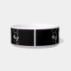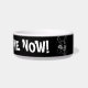Black and white illustrated Cat food bowl with 'Meow - Feed me now!' text