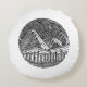 Black and White Ink-Drawn Round Alp Landscape Cushion