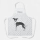 Destei's original cartoon illustration of a cute black and white colour Italian Greyhound / Iggy breed dog. There is also a personalizable text area for a name. The background has a pattern of grey dog paw prints.