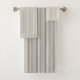This modern towel set features thin black stripes on a warm ivory-cream background for a soft, understated look. The narrow stripe pattern feels calm and timeless, adding quiet structure. An easy, versatile choice for minimalist, Scandinavian-inspired, or relaxed neutral bathrooms.