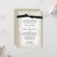 Romantic rustic country wedding invitation with the printed look of white lace and light coloured burlap and accented with a black bow. Customise text and fonts to suit your own style. The look of burlap with lace printed invitations are prefect for a country theme or rustic style wedding.