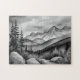 Black and white landscape painting of mountains jigsaw puzzle