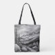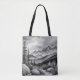 Black and white landscape painting of mountains tote bag