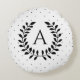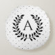 Black And White Laurel Monogram Polka Dot Pattern Round Cushion