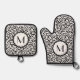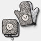 Black and White Leopard Monogram Oven Mitt & Pot Holder Set