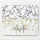 Black and white marble gold sparkle flake Monogram Mouse Pad