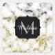 Black and white marble gold sparkle flake Monogram Square Sticker