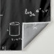 Black and white backdrop with a pattern of math formulas and equations. Perfect room decor for college rooms or as a graduation backdrop. Illustrated and designed by Patricia Alvarez.