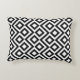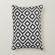 This stylish black and white geometric pattern accent pillow features an original ornamental design. White meanders angle around black diamonds containing white diamonds. Black zigzags provide subtle separation between the winding paths.
