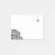 A simple yet stylish design featuring a corner border with a black and white medallion. An accenting Monogram initial.