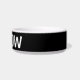 Black and white meow Cat bowl with custom pet name. Cute personalised gift idea for new pet, cat owner, crazy cat lady or animal lover. Personalizable colour and name. Kitty design.